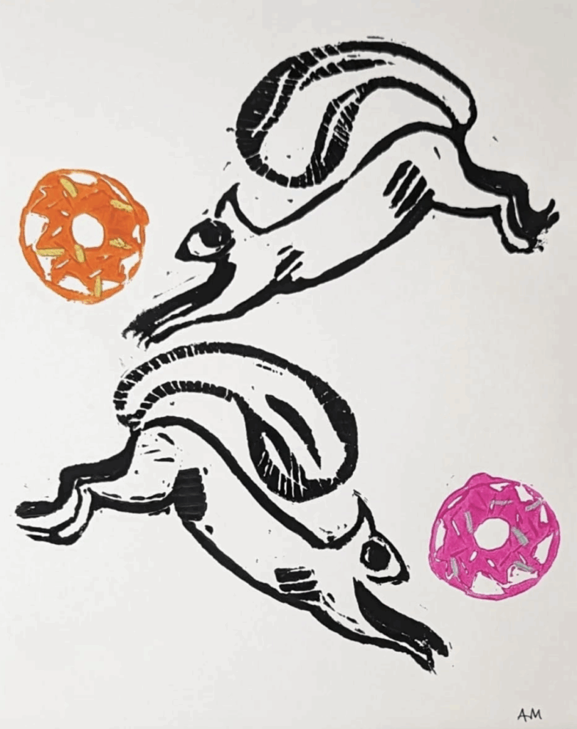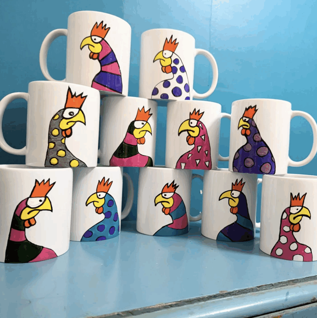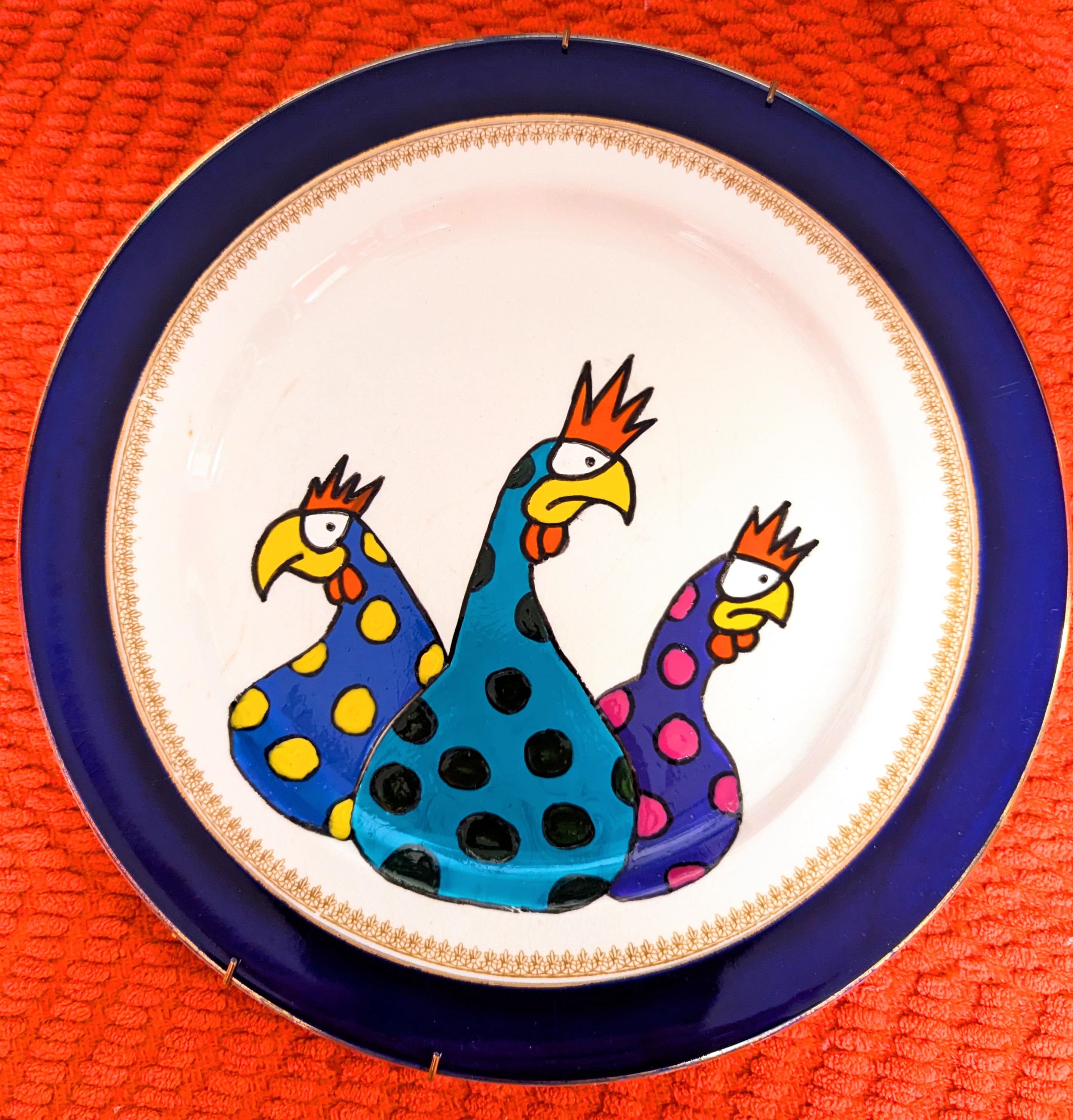 Original paintings, altered art, prints, block prints, plates, t-shirts and tote bags available on Instagram.com/ShoutyBirds.